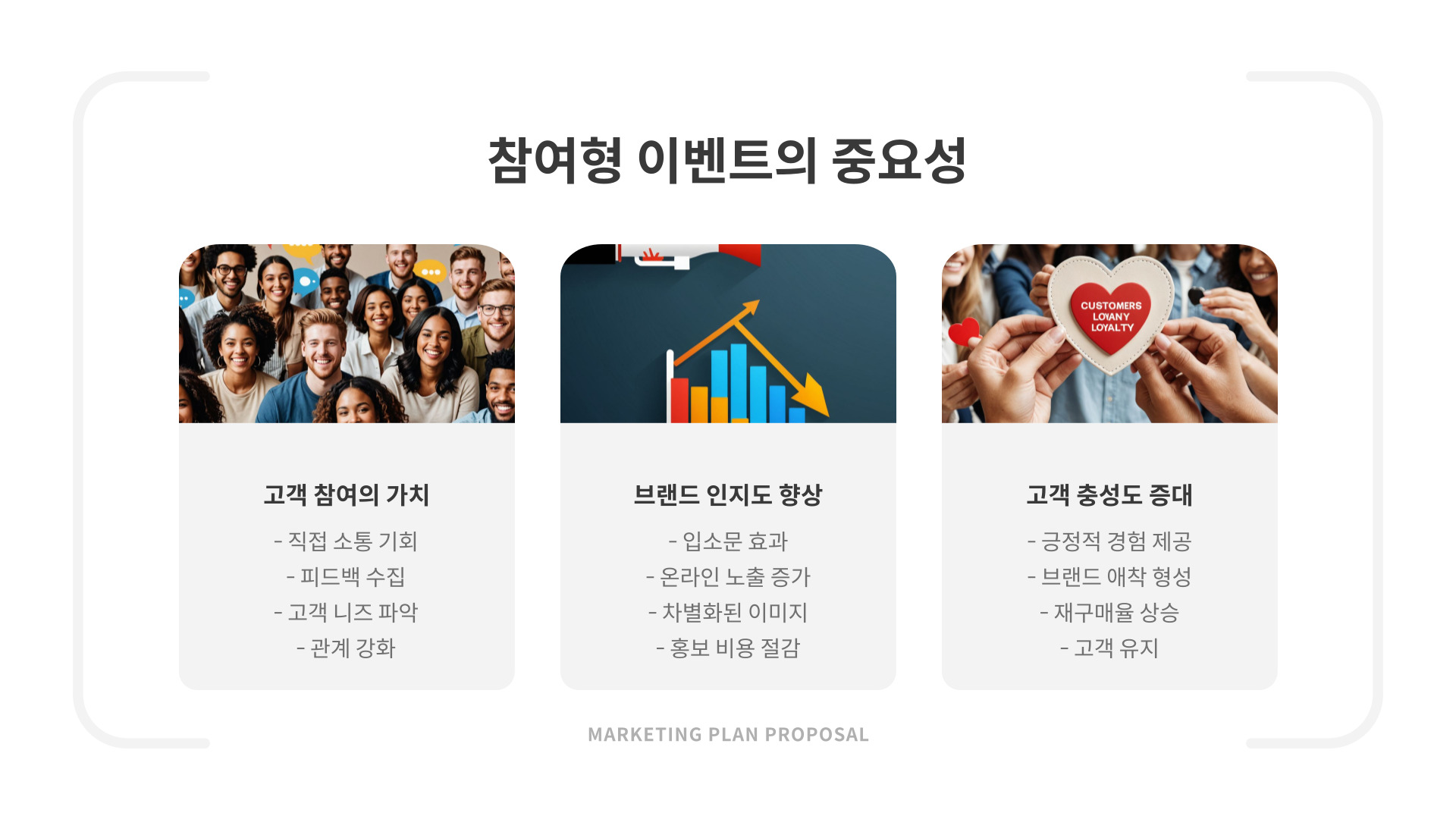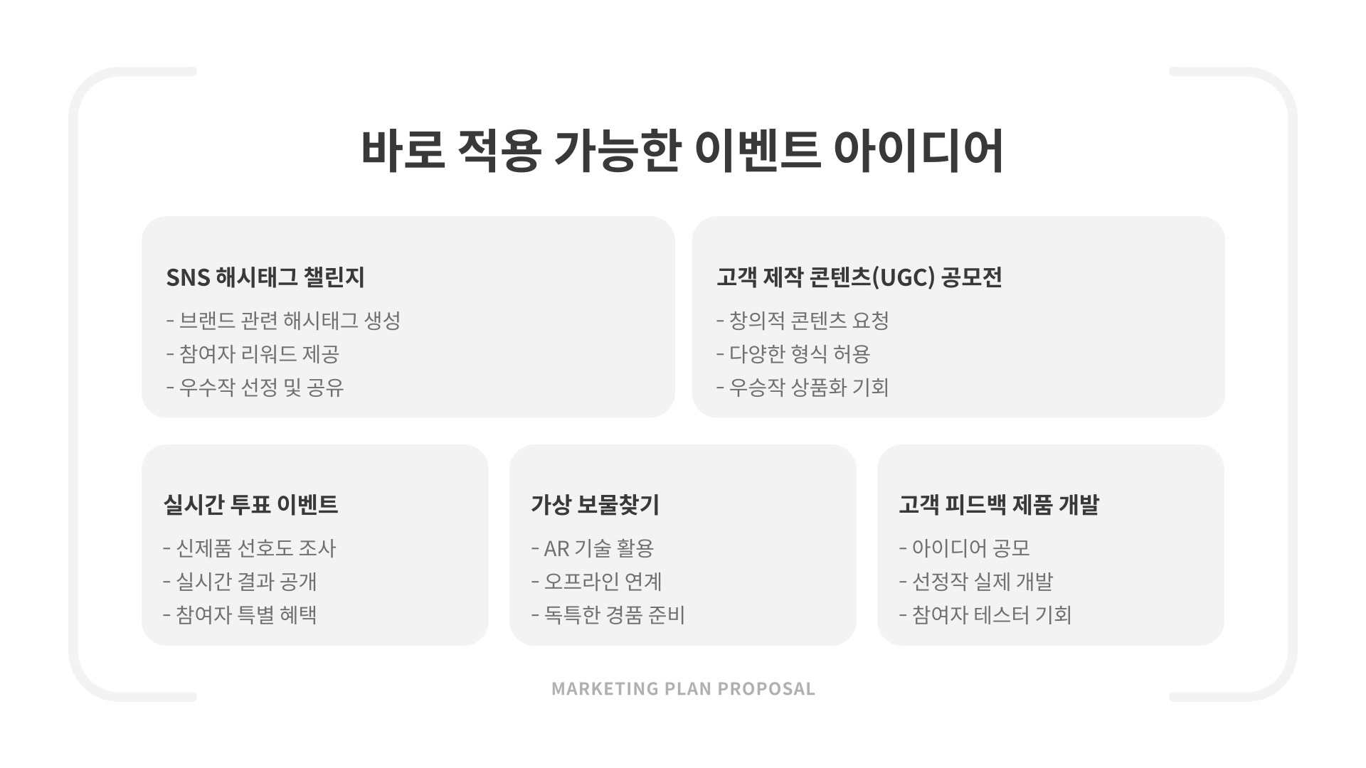 다양한 형태의 참여형 이벤트 아이디어를 통해 고객의 흥미를 유발하고 지속적인 관계를 구축할 수 있습니다.
