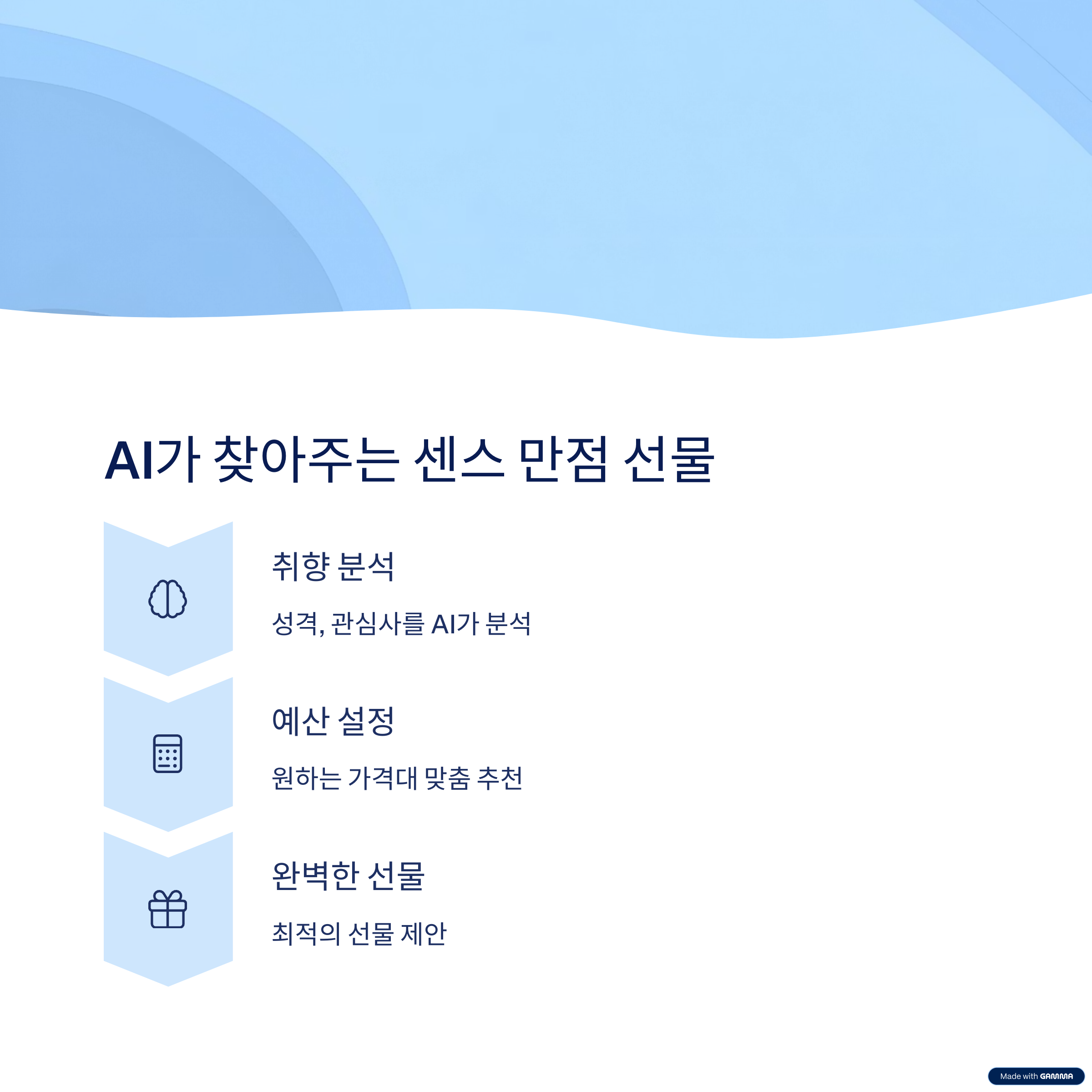 최근 등장하는 'AI 선물 탐험'과 같은 서비스들은 단순히 인기 상품을 나열하는 것을 넘어, 개인에게 최적화된 선물을 찾아줍니다. 작동 원리는 다음과 같습니다.