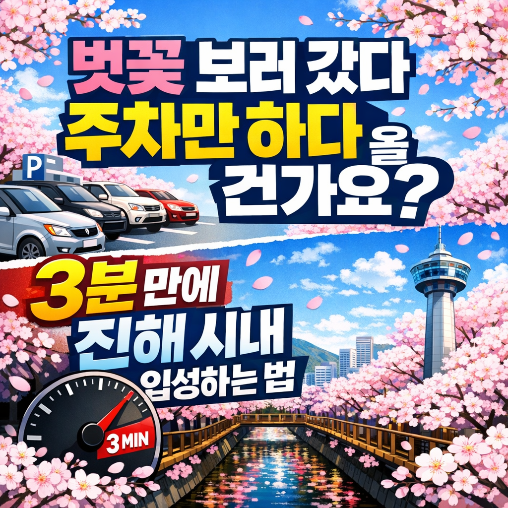 여러분은 '진해 군항제' 하면 무엇이 가장 먼저 떠오르시나요? 흐드러지는 벚꽃 터널, 로망스 다리의 낭만... 하지만 누군가에게는 '주차장 찾아 1시간 동안 뱅뱅 돌았던 악몽'이 먼저 떠오를지도 모릅니다. 저 역시 작년에 호기롭게 차를 끌고 진해 시내로 진입했다가, 벚꽃 구경은커녕 앞차 뒷모습만 2시간 동안 감상하며 소중한 휴일을 날려버린 경험이 있거든요.
