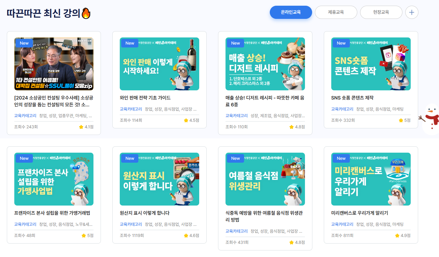 - 맞춤형 교육 추천: 자신의 업종, 관심 분야에 따라 맞춤형 교육을 추천받을 수 있습니다.