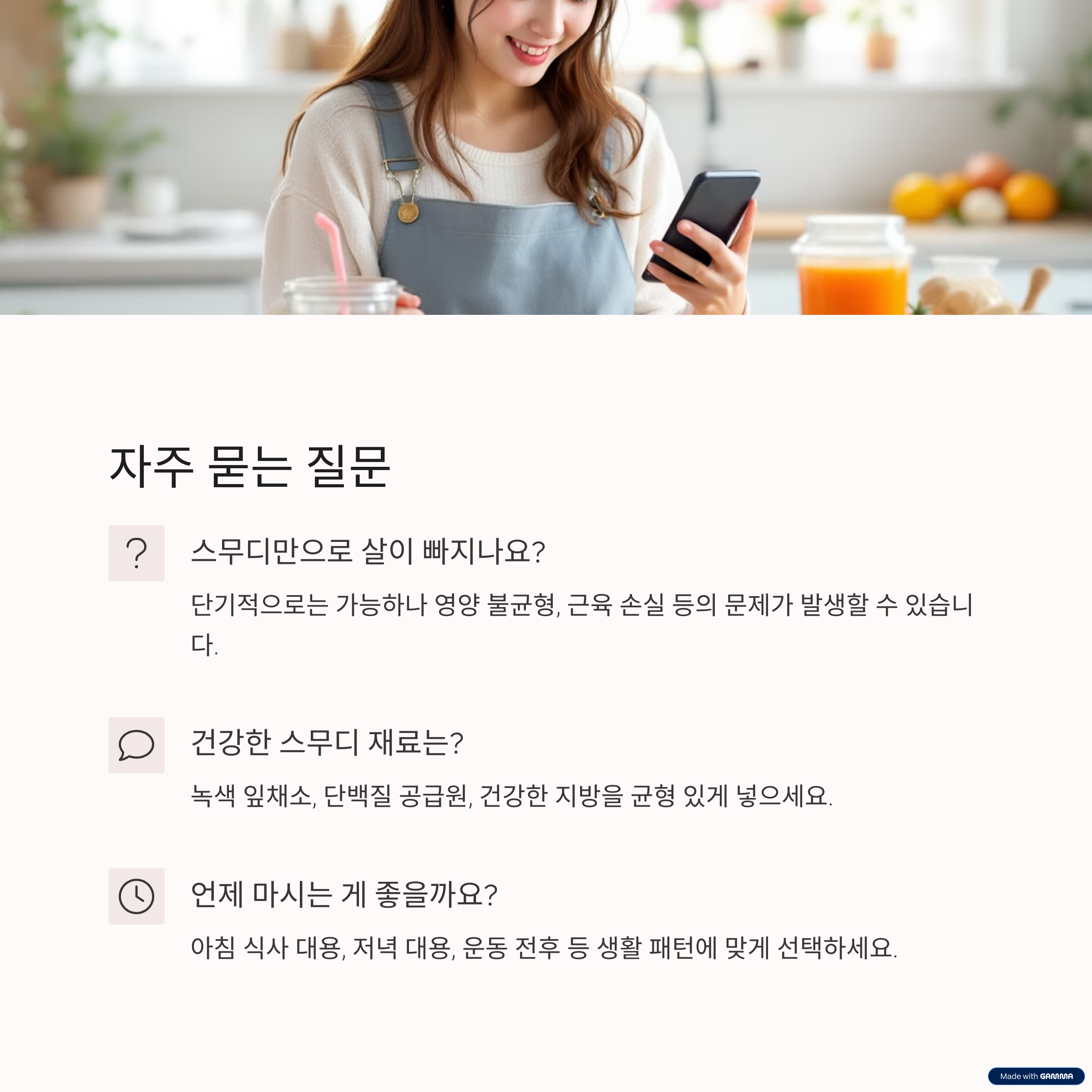 스무디 다이어트에 대해 자주 묻는 질문과 답변을 모아봤습니다.