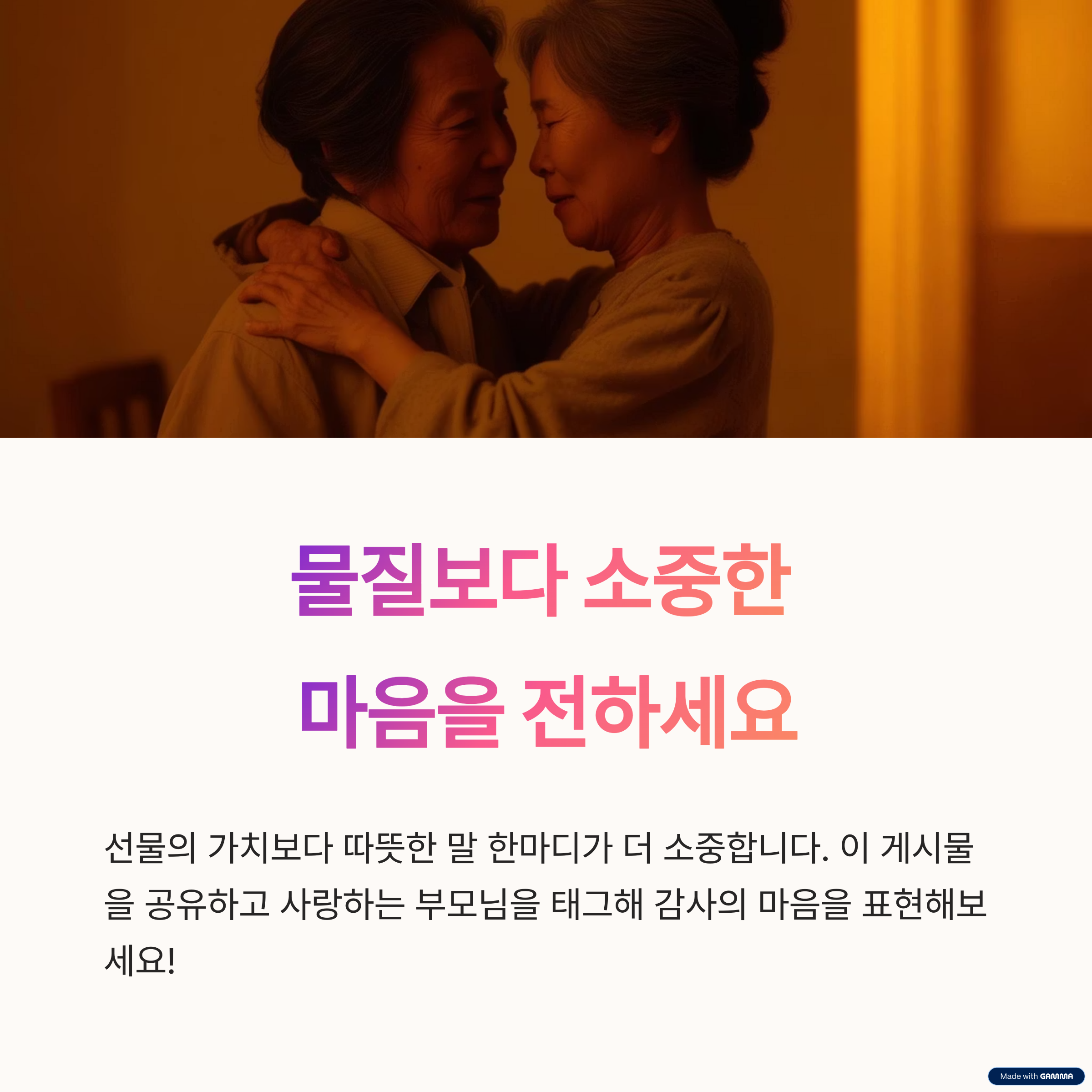 가장 중요한 것은 선물의 가격이나 종류가 아니라, 그 안에 담긴 진심 어린 마음입니다. 어떤 선물을 선택하시든, 부모님을 향한 사랑과 감사의 마음을 충분히 표현하며 따뜻하고 행복한 어버이날을 보내시길 바랍니다. 여러분의 따뜻한 마음이 부모님께 온전히 전달될 거예요. 😊