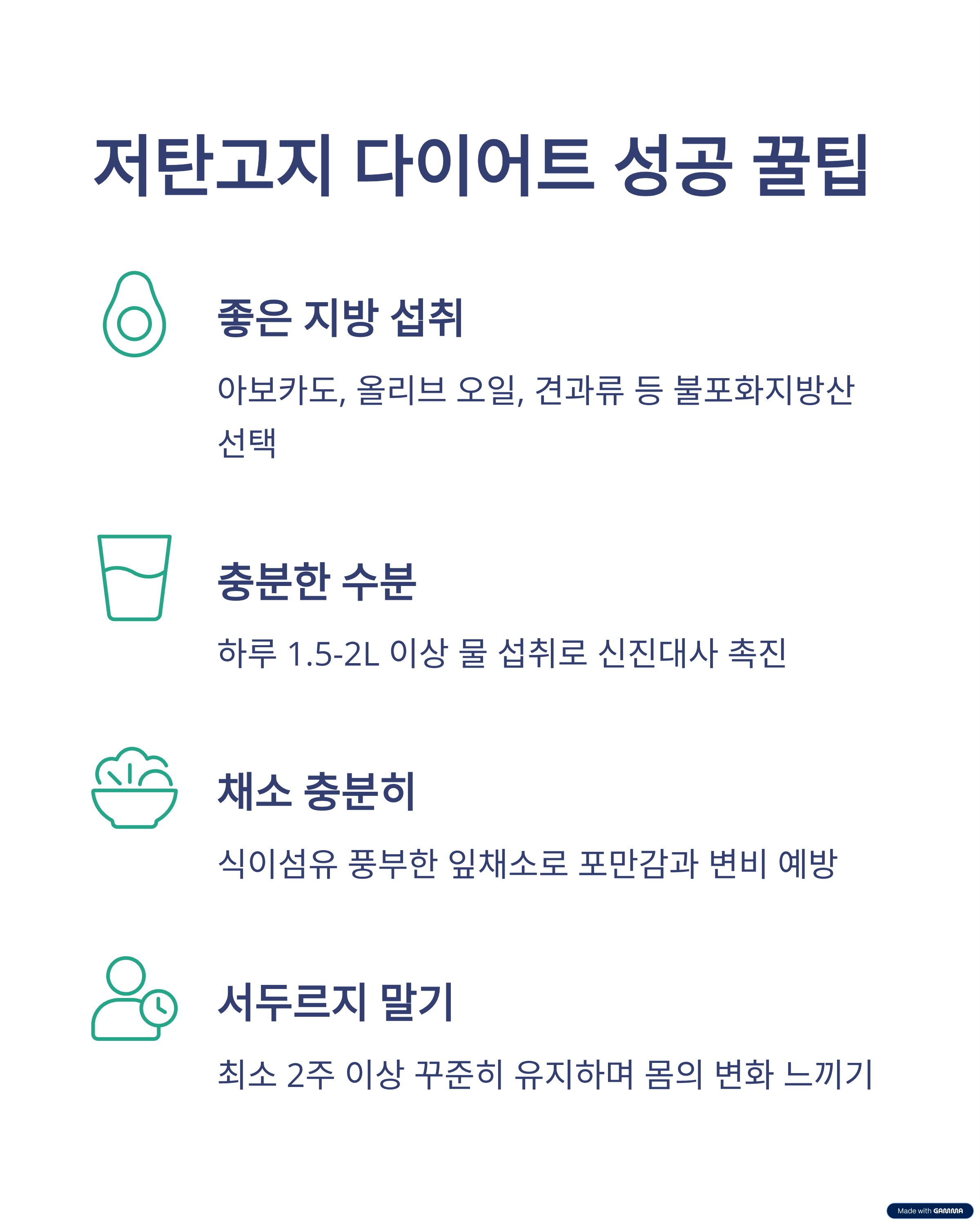 5. 저탄고지 다이어트, 이것만은 꼭! (성공 꿀팁) 💡