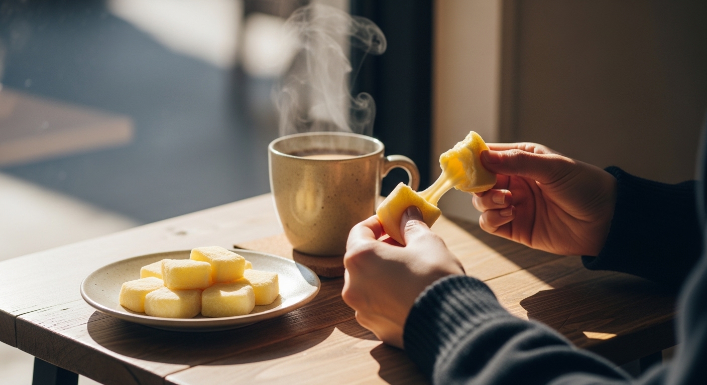 제가 구매한 루씨허 버터떡은 해외 직구를 통해 비교적 빠르게 받아볼 수 있었습니다. 포장을 열었을 때부터 느껴지는 은은한 버터 향이 식욕을 자극했는데요. 겉보기에는 일반 떡과 크게 다르지 않아 보였지만, 손으로 눌러보니 예상보다 훨씬 쫄깃하고 탄력 있는 질감이 느껴졌습니다. 이 쫀득한 식감이 바로 루씨허 버터떡의 가장 큰 매력 중 하나라고 할 수 있겠네요. 마치 찹쌀떡이나 인절미를 연상시키면서도, 그보다 훨씬 더 찰지고 씹을수록 고소한 맛이 올라오는 듯했습니다.