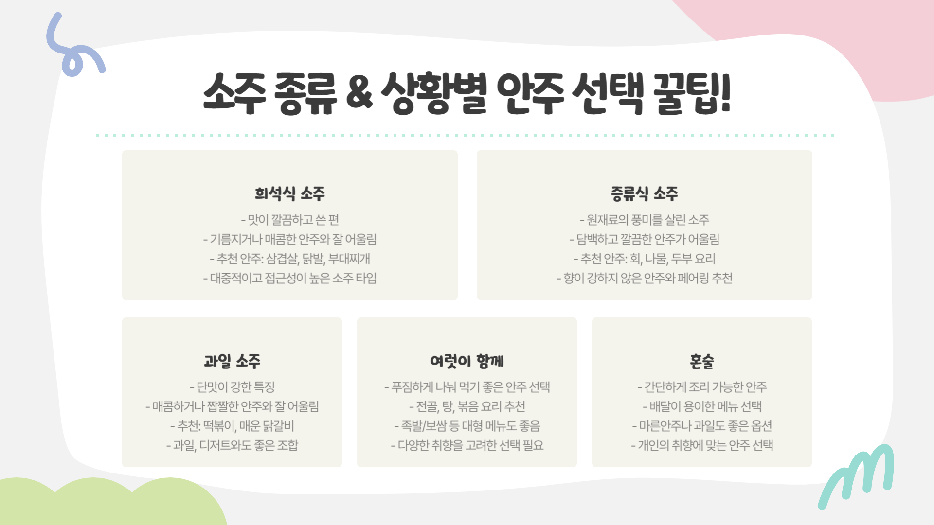 💡 소주 종류 & 상황별 안주 선택 꿀팁!