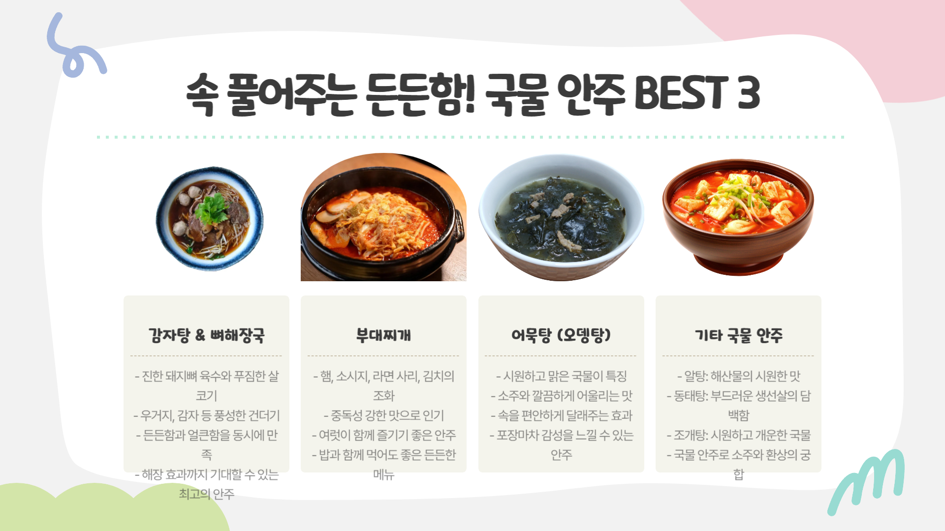 🍲 속 풀어주는 든든함! 국물 안주 BEST 3