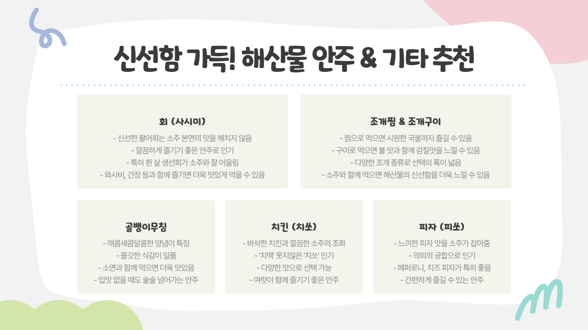 🐟 신선함 가득! 해산물 안주 & 기타 추천