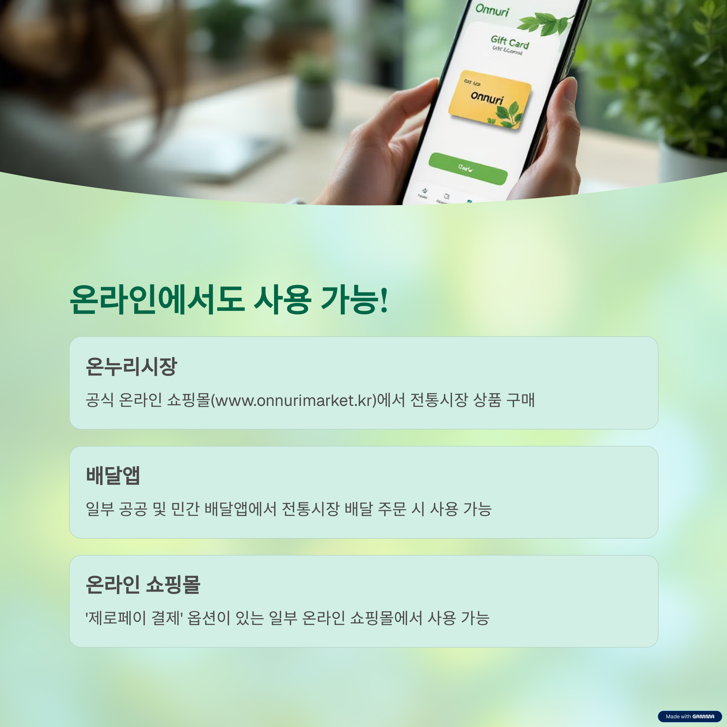 - 지하도 상점가 및 골목형 상점가: 전통시장 외에도 지역 상점가, 골목에 있는 작은 가게들 중 가맹점으로 등록된 곳에서 사용 가능합니다.