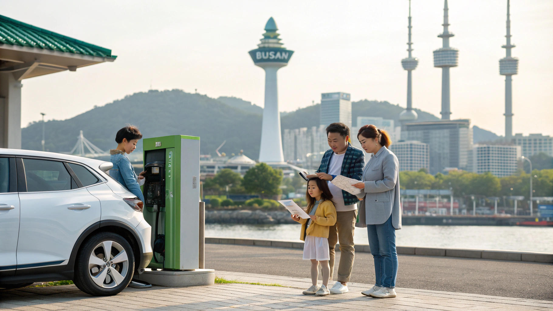 부산시는 전기차 충전소를 꾸준히 확충하고 있습니다. 환경부 무공해차 통합누리집 또는 충전소 관련 앱을 통해 실시간으로 충전소 위치와 이용 가능 여부를 확인할 수 있습니다. 아래 그림에 링크를 연결했습니다.